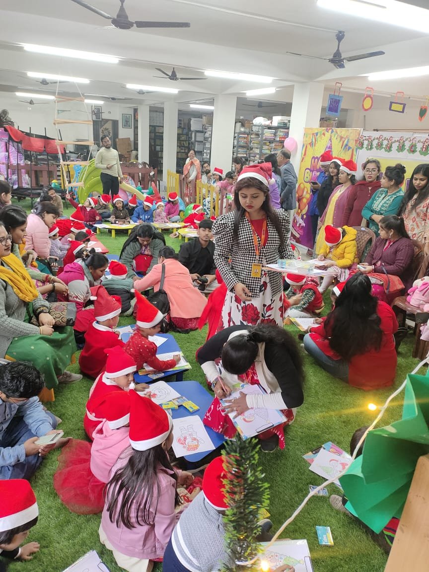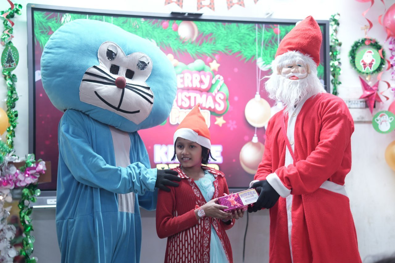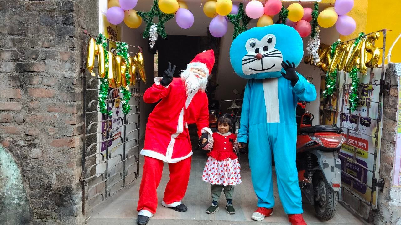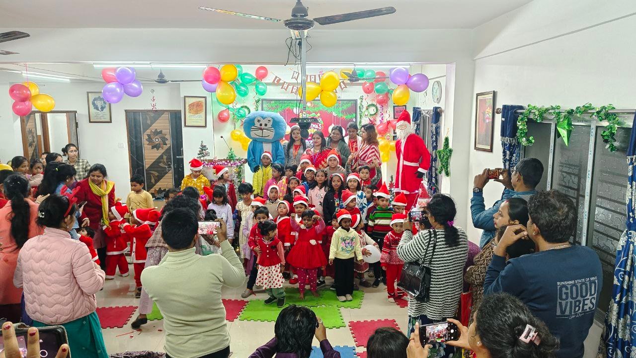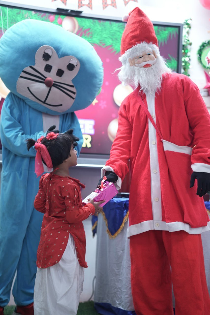 Our talented Kidzee students added charm to the event with their delightful group dance performances and recitations, reflecting confidence and enthusiasm. Their performances were truly heartwarming and appreciated by all present. The highlight of the celebration was the arrival of Santa Claus and Doraemon, who brought smiles to every child’s face by distributing gifts and spreading festive cheer. The joy and excitement among the children made the moment even more special. The event concluded with a joyful cake-cutting ceremony, marking the perfect end to a day filled with laughter, fun, and celebration.