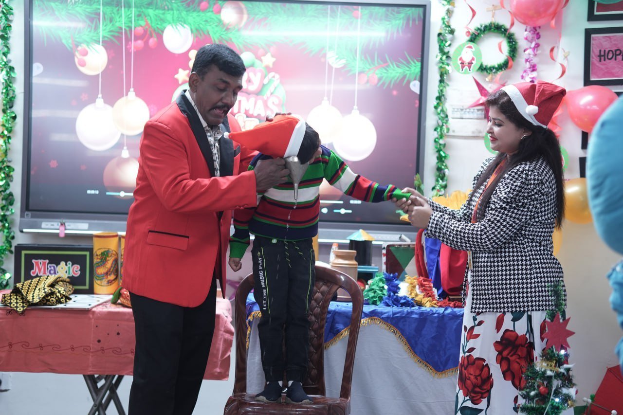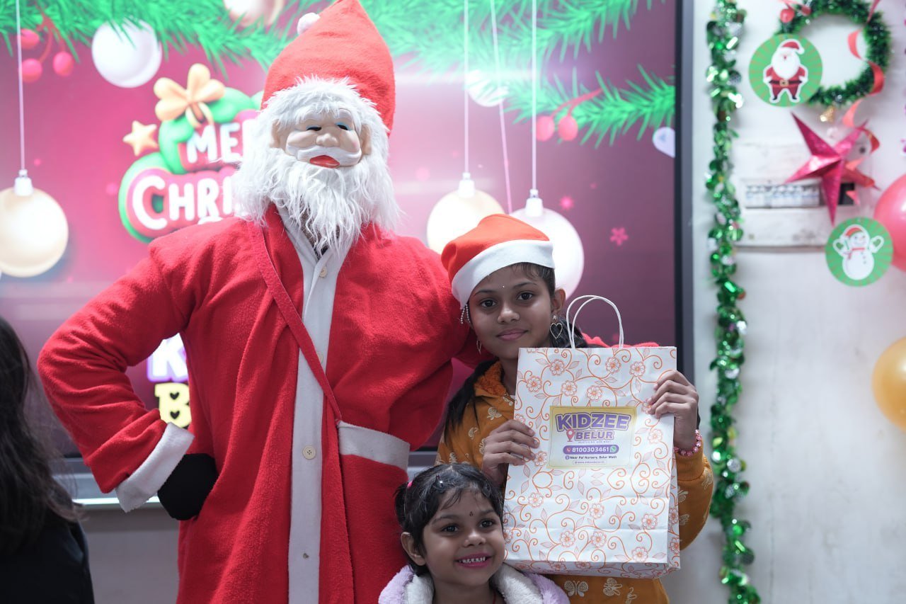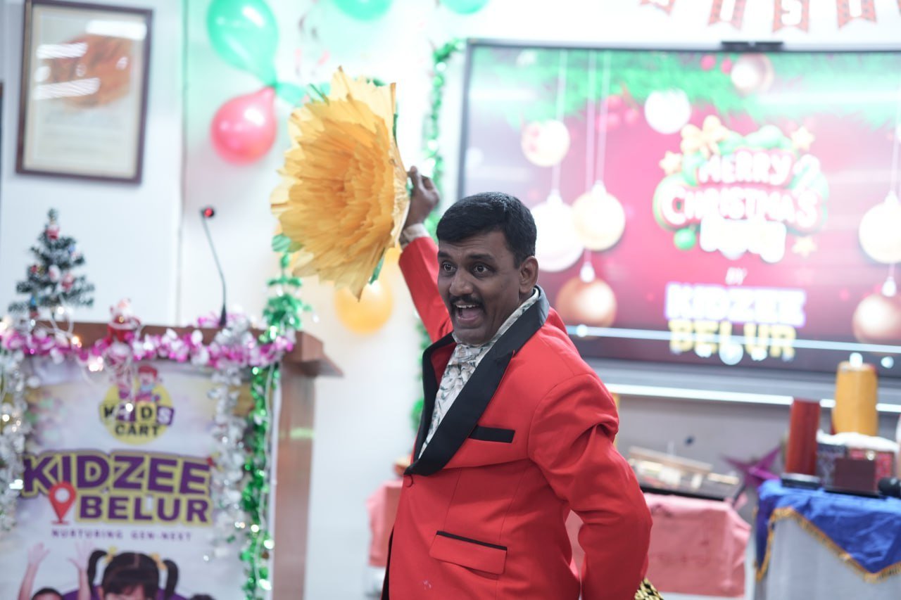 The spirit of Christmas came alive at Kidzee Belur on 21st December 2025 with a vibrant and joyful celebration held at our premises. The event was designed to create a memorable experience for our little learners through fun, creativity, and togetherness. The celebration began with an engaging colouring competition, where children showcased their creativity and imagination with bright festive themes. This was followed by an exciting magic show that kept everyone amazed and entertained.