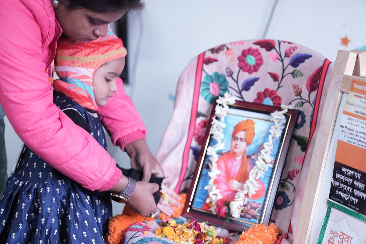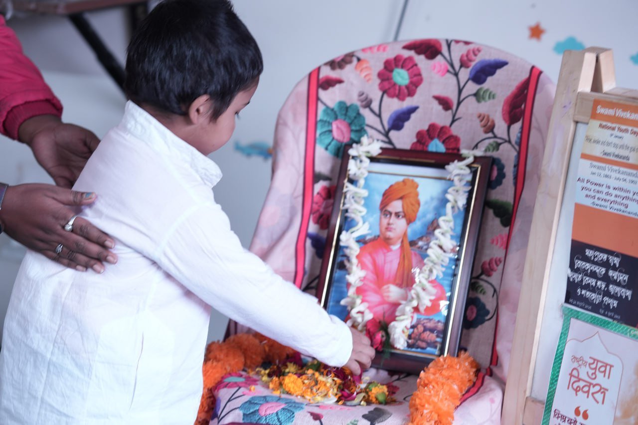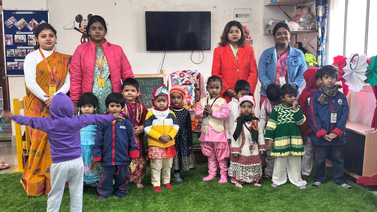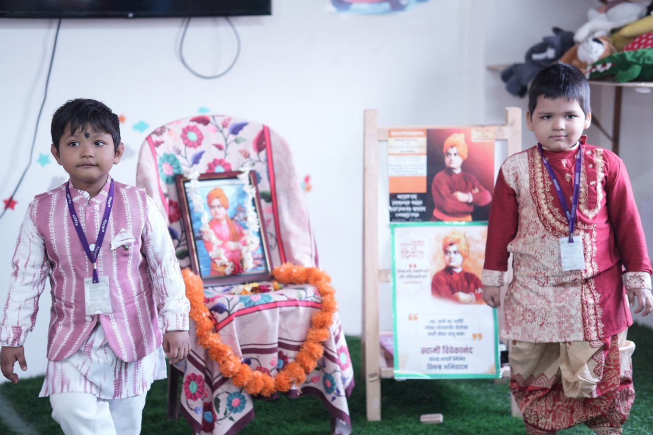 The celebration aimed to introduce young learners to the inspiring life, values, and teachings of Swami Vivekananda in an engaging and age-appropriate manner. The event began with a brief introduction to his life and contributions, helping children understand the importance of confidence, discipline, and kindness. Teachers guided the students throughout the program, ensuring that they not only participated but also understood the significance of the day. The celebration helped instill moral values, self-belief, and respect for great personalities among the children.